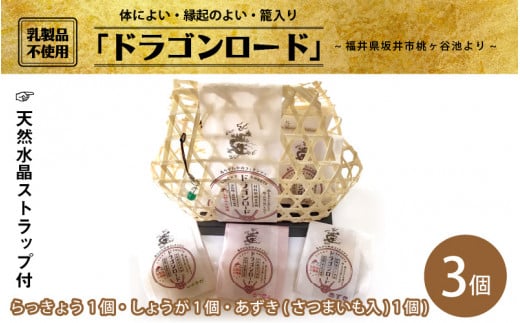 ~福井県坂井市桃ヶ谷池より~ 体によい・縁起のよい・籠入り 「ドラゴンロード」(フィナンシェ) 3個 【天然水晶ストラップ付】[A-11204]