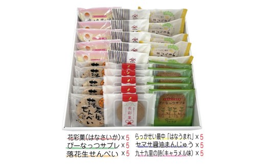 お菓子のたいよう 菓子詰合せCセット / 花彩菓 ぴーなっつサブレ 落花生せんべい はなうまれ 九十九里の詩 ヤマサ醤油まんじゅう すいーとパイもん 和菓子 和スイーツ お菓子 菓子 おやつ お菓子のたいよう お土産