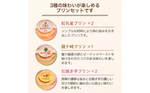 プリン 地元素材にこだわった魅惑の3種のプリン5個セット(紅孔雀&落花生&焼き芋) | プリン ぷりん 食べ比べ 味比べ ギフト 贈答用 プリン専門店 スイーツ お取り寄せ 内祝い 取り寄せ お取り寄せグルメ お歳暮 お祝い 厳選素材 洋菓子 お菓子 デザート おかし ご褒美 セット 新鮮 人気 卵 こだわり 濃厚 茨城県 龍ケ崎市
