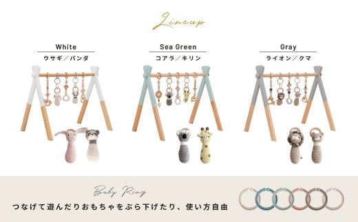- HOPPL アミマルズベビージムセット(本体:ホワイト・ハンギングトイ:ピンクセット)・ラトル(パンダ・ウサギ)・ガラガラ(ライオン)付き[髙島屋選定品]65A1733