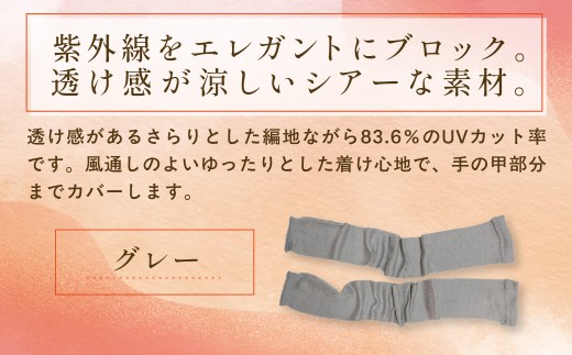 京都西陣の絹⽷屋さん『透け感まとふ。』シルク100% シアーアームカバー(紫外線・UV対策) グレー FCFA050