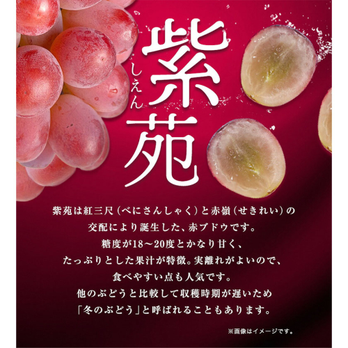 【先行予約】ぶどう紫苑 選べる 約 600g 1房 または 約 1.2kg 2房 【配送不可地域あり】(北海道・沖縄・離島) 株式会社藍《2026年11月上旬-12月上旬頃出荷》 岡山県 浅口市 岡山県産 ぶどう フルーツ 果物 くだもの しえん 赤ぶどう 送料無料