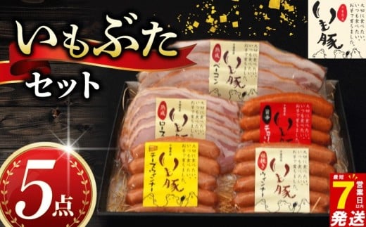 \最短7営業日以内発送/ ウインナー あらびき セット 国産 いも豚 5点セット チョリソー ロース ハム ベーコン 冷蔵 チーズ 旨辛 ギフト ギフトセット ギフト用 千葉県 旭市 旭食肉協同組合 ask006