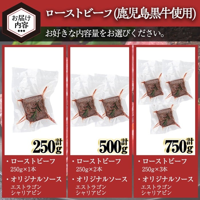 <内容量が選べる>ローストビーフ(鹿児島黒牛使用)(計250g~750g・オリジナルソース付き) ローストビーフ ソース付き 冷凍【黒牛】A956