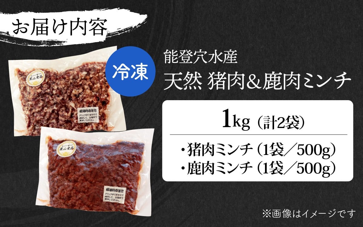 - 能登 穴水産 天然 猪 & 鹿肉ミンチ 各500g 計1kg | 奥能登 能登半島 ジビエ いのしし お肉 しか肉 1キロ ミンチ肉 国産 冷凍配送 ハンバーグ 料理