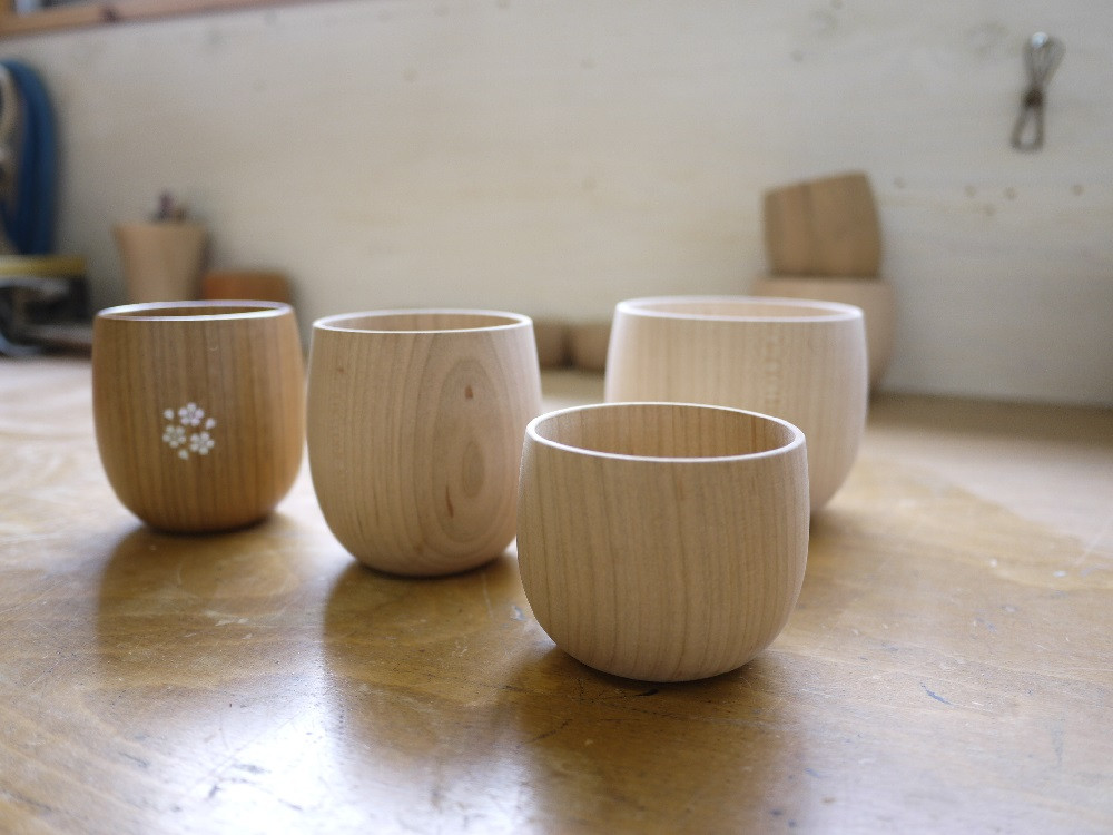 - 貝象嵌 おちょコップ 山桜 無垢材 おちょこ コップ 木製 食器 木工品 贈り物 記念品 ギフト プレゼント 岩手県 北上市 夢工房 E0303 かわいい 工芸品
