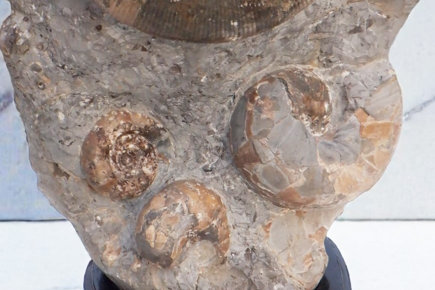 - 化石 ダメシテス 小平産 アンモナイト 台付き [加藤樹石苑 北海道 歌志内市 01227an020] 北海道産 インテリア 置物 コレクション