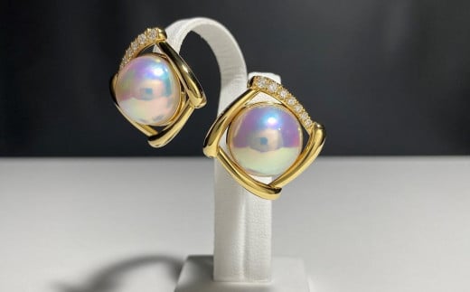 - 【奄美パール】奄美の輝き®×桜珠 マベ真珠 13mm K18イエローゴールド巻ピアス2477<数量限定>