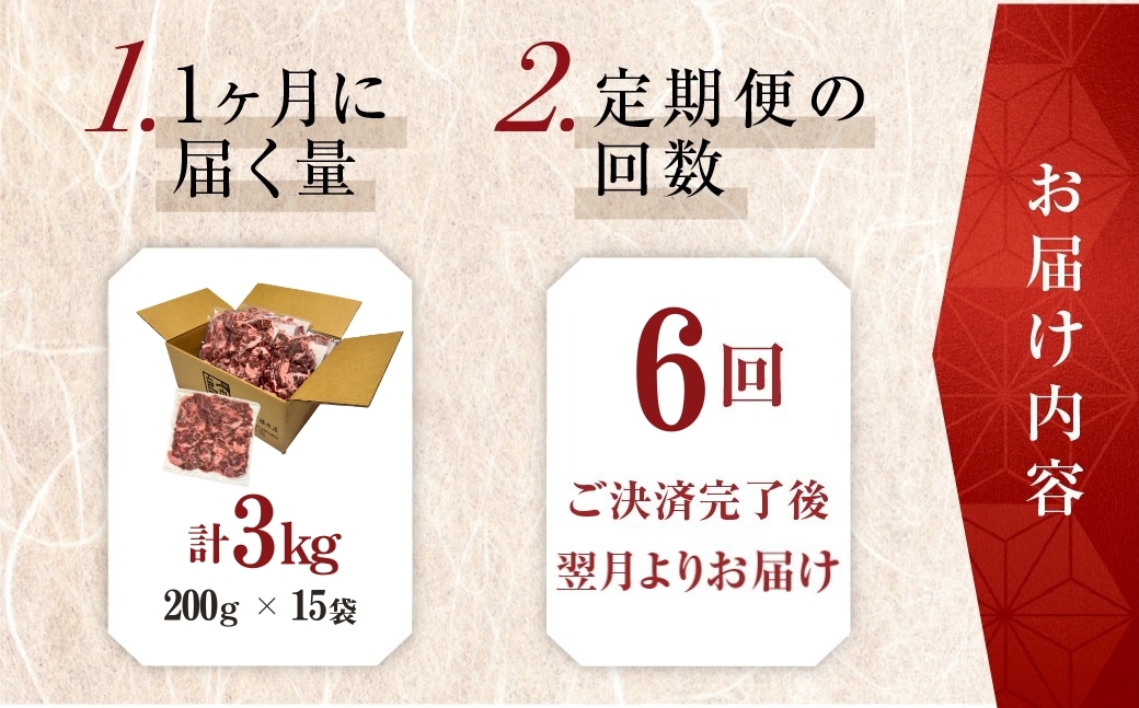 - 【6回定期便・隔月発送】豊橋牛 切り落とし 3kg | 牛肉 肉 国産牛 肉 焼肉 すき焼き 定期便 しゃぶしゃぶ すきやき お楽しみ 人気 冷凍 豊橋市