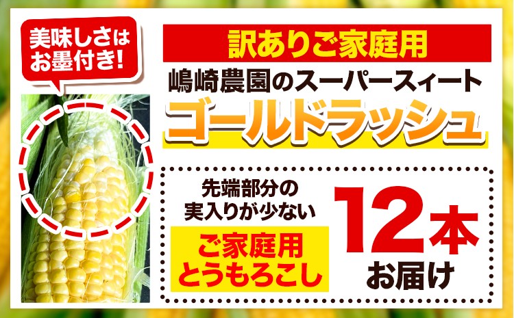 【訳あり】家庭用とうもろこし12本 《2026年8月上旬-9月上旬頃出荷》嶋崎農園 北海道 本別町北海道 十勝 本別町産 スーパースイート トウモロコシ 一番果 冷蔵便 甘い