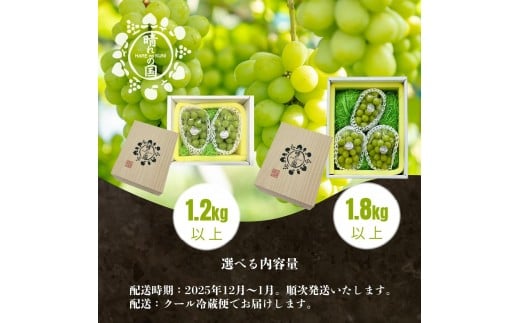 - 【選べる容量】【先行予約 2025年12月上旬~2026年1月発送】旬果蔵出し 岡山県産シャインマスカット1.2kg以上(2~3房)~1.8kg以上(3~4房)