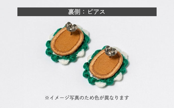 【ファクトリー製造の刺繍ピアス raccan[ラッカン]】garden A『hana kanmuri』朱 [CDX007]
