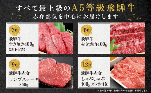 A5等級飛騨牛 定期便 4回(すき焼き/ステーキ/焼肉/しゃぶしゃぶ)【3月・6月・9月・12月発送】| 肉 黒毛和牛 定期便 すき焼き しゃぶしゃぶ ステーキ 飛騨牛 定期便 牛肉 定期便 肉 和牛 焼肉 すき焼き 牛肉 しゃぶしゃぶ ステーキ 定期便 牛肉 人気 岩ト屋 HF108