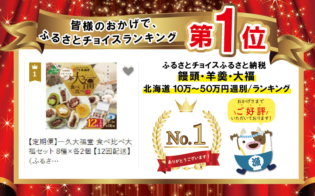 - 御礼!ランキング第1位獲得!【定期便】一久大福堂 食べ比べ大福セット 8種×各2個 【12回配送】(ふるさと納税 和菓子 大福 ふるさと納税 大福 菓子 お菓子 わがし だいふく あんこ 詰合せ 詰め合わせ 北海道産小豆 ふるさとチョイス ふるさと納税 仕組み キャンペーン 限度額 計算 ランキング やり方 シミュレーション チョイス チョイスマイル )
