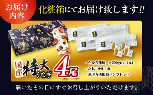 新富町産うなぎ蒲焼4尾 合計720g以上