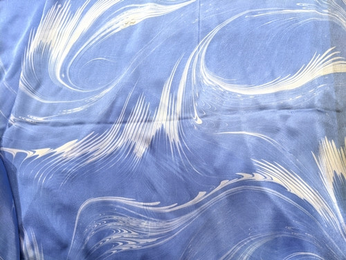 - 墨流し染 シルク ロング ストール 青羽柄 大判 / 染美堂 絹 サテン織 奈良県 葛城市【snbd003】