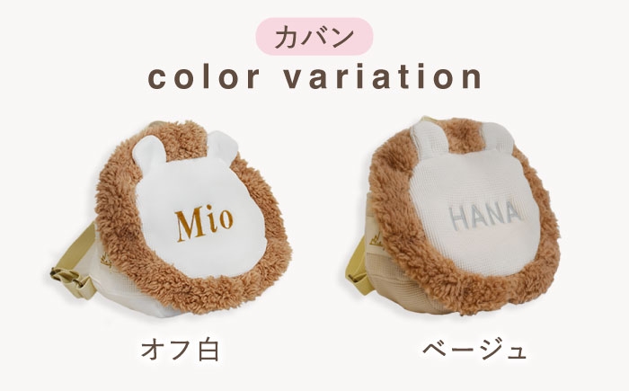 - 【名入れ可能!】ワッフル素材 ライオンべビーリュック【coco plus an factory】オフ白×シルバー [OCR072-2]