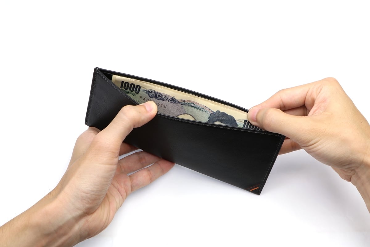 - フタもマチもない薄長財布 《選べるカラー:キャラメル/ネオブラック/カフェブラウン》牛革 (栃木レザー)|長財布 メンズ 革 小銭入れなし ファスナーなし フタなし 薄型 薄い 革財布 本革 レザー 革職人 デュアルライン [1211-1214]