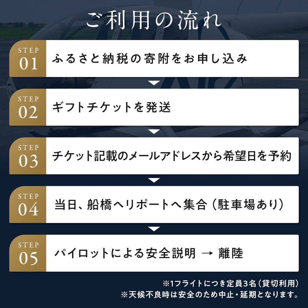 ヘリコプター 遊覧 船橋 ヘリポート ギフトチケット 1日1組 限定 ふるさと納税 限定 プラン