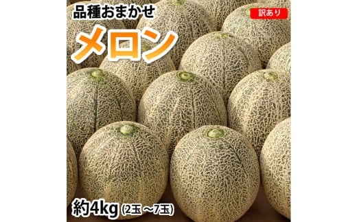訳あり メロン 品種おまかせ 約4kg (2~7玉) 緑果肉 赤果肉 白果肉 めろん 果物 くだもの フルーツ 国産 九州 熊本県 熊本市 常温 【2026年5月下旬~7月下旬迄順次発送予定】