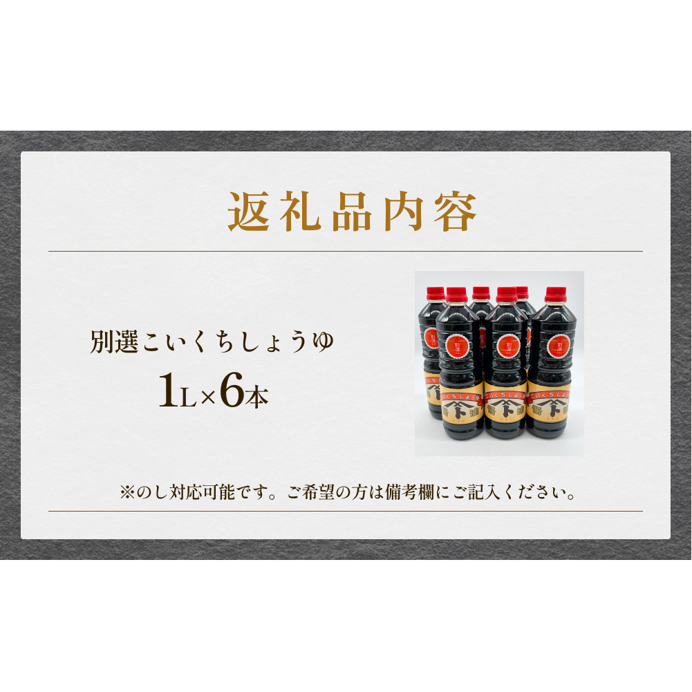 本川藤由商店 別選こいくちしょうゆ 1L×6本 富山県 氷見市 醤油 調味料 濃口 しょうゆ