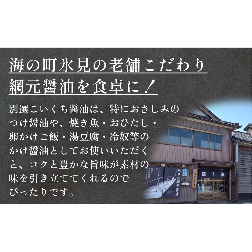 - 本川藤由商店 別選こいくちしょうゆ 1L×6本 富山県 氷見市 醤油 調味料 濃口 しょうゆ