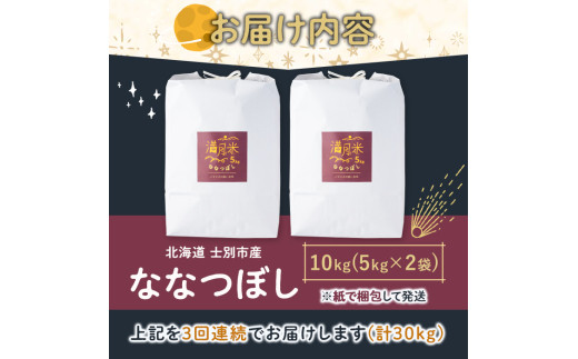 《全3回定期便》 北海道 士別市産 満月農園のななつぼし(10kg×3回・計30kg) 米 お米 定期便 北海道米 北海道産 ななつぼし 白米 ごはん コメ こめ 満月米 【満月農園】【E7068】