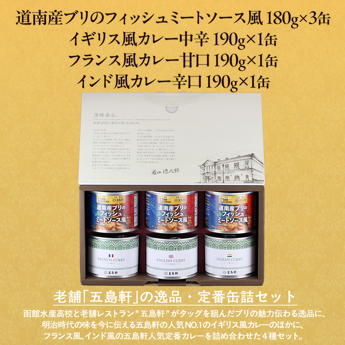 - 五島軒 道南産ブリのフィッシュミートソース風&缶詰カレーギフト HOKE012