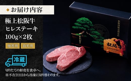 - 極上 松阪牛 ヒレステーキ 200g (100g×2枚) < 冷蔵 > 牛追道中 肉 牛 牛肉 和牛 ブランド牛 高級 国産 霜降り 人気 ヒレ ヒレ肉 フィレ フィレ肉 ステーキ US3