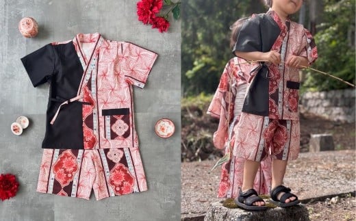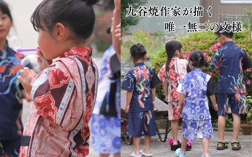 - [KUTANI×KIMONO] キッズ甚平 上下2点セット 遊泳花 (サイズ:130-140cm) | 石川県 小松市 【デクシオーラ株式会社】