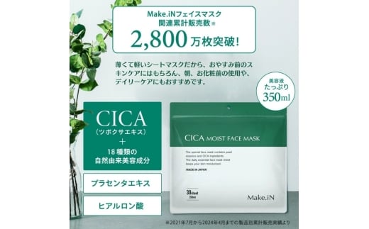 - CICA MOIST FACE MASK シカ モイストフェイスマスク 30枚入り Make.iN パック フェイスマスク 日本製 美容成分 保湿 自宅エステ シートマスク 潤いスキンケア