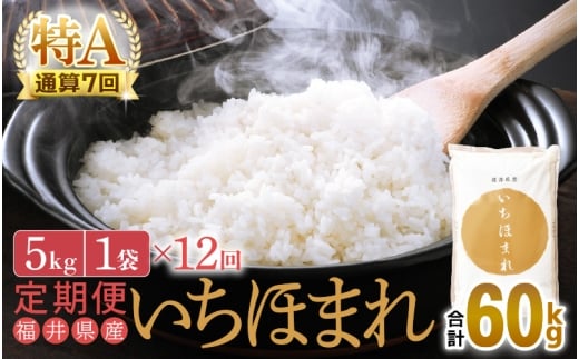 特A通算7回!お米 令和7年産 定期便 12回 いちほまれ 5kg × 12回(計60kg)福井県産【米 コメ kome 12ヶ月連続 計60キロ 精米 白米】 [e27-n005]