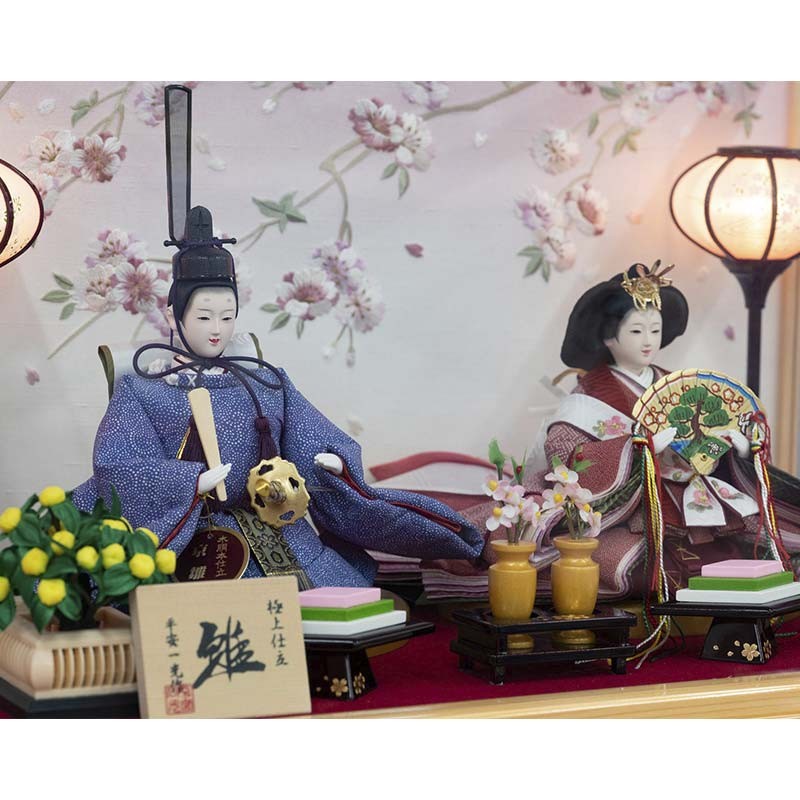 【雛人形】和桜 小三五(約16㎝)二人 ガラスケース 灯り付