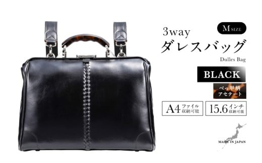 【選べるカラー】【選べるハンドル】Y7 横型 ダレスバッグ Mサイズ べっ甲柄アセテートハンドル <ブラック> [N-18103a] / 鞄 カバン 手持ち鞄 リュック 肩掛け鞄 越前漆塗 伝統工芸 プレゼント ギフト 日本製 福井県鯖江市
