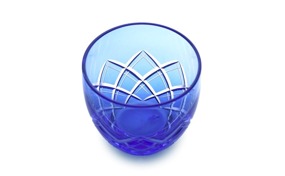 - 浅草切子 KANA KURITA「重ね矢来オールド 青藍」木箱入り| 切子 花切子 切子ガラス ガラス工芸 グラス ガラス コップ 手作り ぐい呑み 家飲み 酒器 ハンドメイド 手作り ギフト 贈答 プレゼント