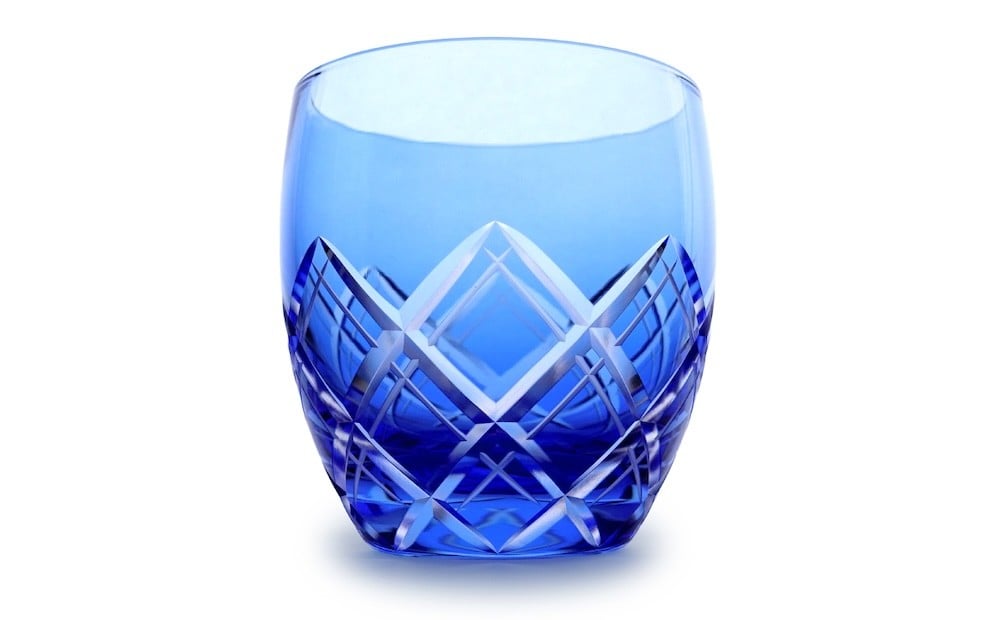 浅草切子 KANA KURITA「重ね矢来オールド 青藍」木箱入り| 切子 花切子 切子ガラス ガラス工芸 グラス ガラス コップ 手作り ぐい呑み 家飲み 酒器 ハンドメイド 手作り ギフト 贈答 プレゼント