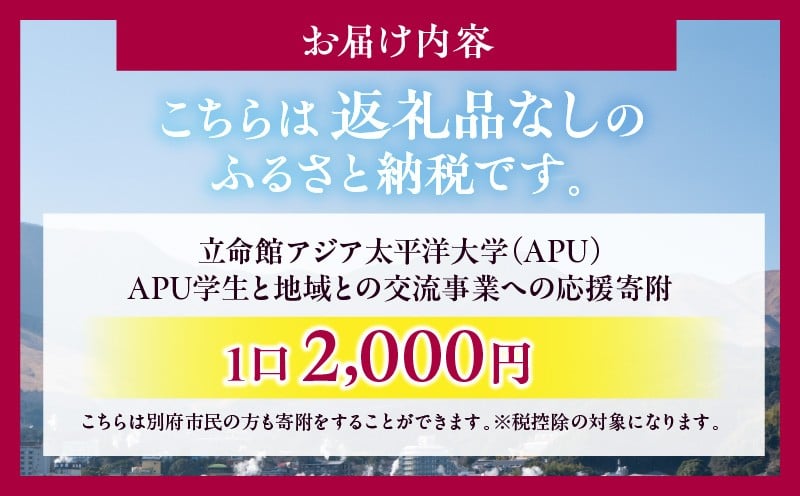 - 【返礼品なし】立命館アジア太平洋大学(APU)学生と地域との交流事業への応援寄付(1口2000円)