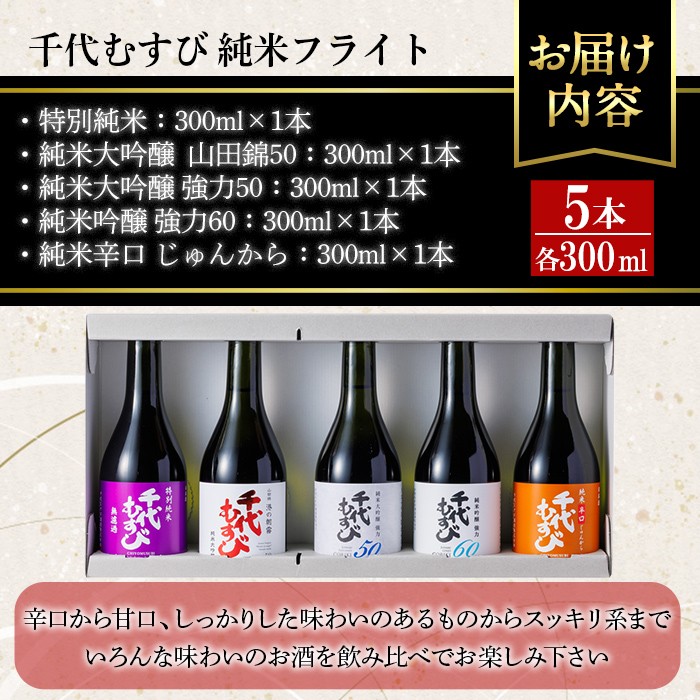- 千代むすび 純米フライト(5種・各300ml×1本) 【sm-AQ013】【千代むすび酒造】