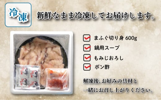 ふぐ ちり 鍋 セット 3~4人前 600g 大容量 冷凍 天然 まふぐ てっちり 河豚 高タンパク コラーゲン 低脂肪 ポン酢 スープ だし もみじおろし 付き 下関 山口 ふぐ特集 秋 冬