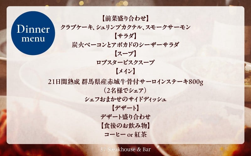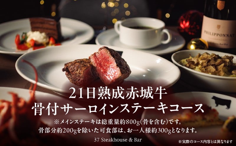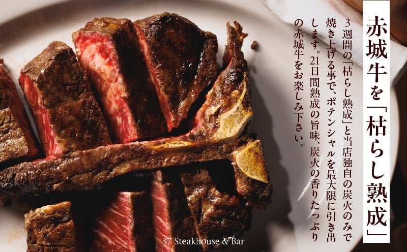 【37Steakhouse & Bar】ペアチケット 21日熟成赤城牛骨付サーロインステーキ800gがメインディッシュ