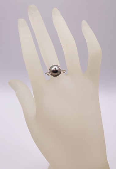 - 1949 Pt900 タヒチ黒蝶真珠8.0㎜up ダイヤモンド0.20ctリング
