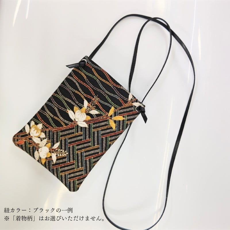 - 着物スマホポーチ | ポーチ 和柄 着物柄 和風 ショルダー 絹 正絹 スマホケース 一点もの ハンドメイド 手作り 贈り物 お誕生日