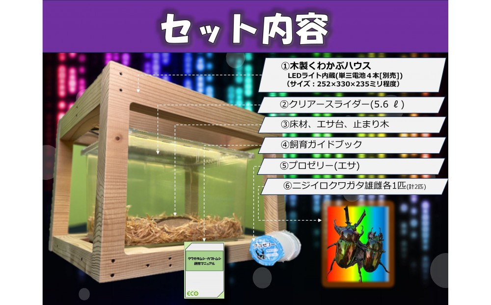 - SDGsな虫かご「くわかぶハウス」クワガタ成体ペア付き飼育セット