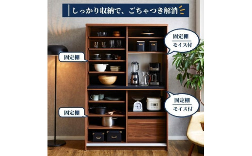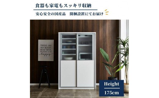 - 食器棚 幅115cm カノン ガラス×板戸【ホワイト・ブラウンより選択】