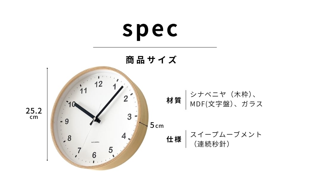 - KATOMOKU plywood clock ナチュラル km-33M 連続秒針 木製 掛け時計 インテリア 寝具 収納 置き時計 掛け時計 雑貨 おしゃれ シンプル 木製 カトモク 加藤木工 katomoku 10000円