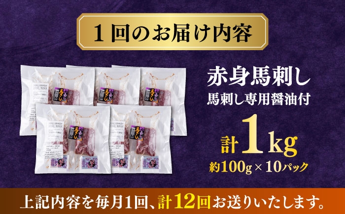 - 【全12回定期便】 赤身 馬刺し 1kg (100g×10P) 【合同会社 長岡フーズ】 [ZFR016]