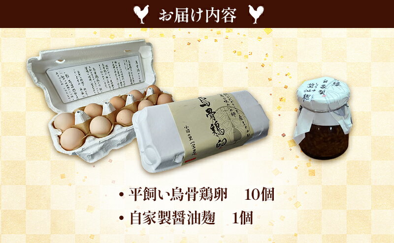 - 【ふるさと納税】平飼い烏骨鶏卵10個と自家製醤油麹(卵かけご飯専用)たまご 生卵 タマゴ うこっけい 平飼い 醤油麹 森町 静岡県
