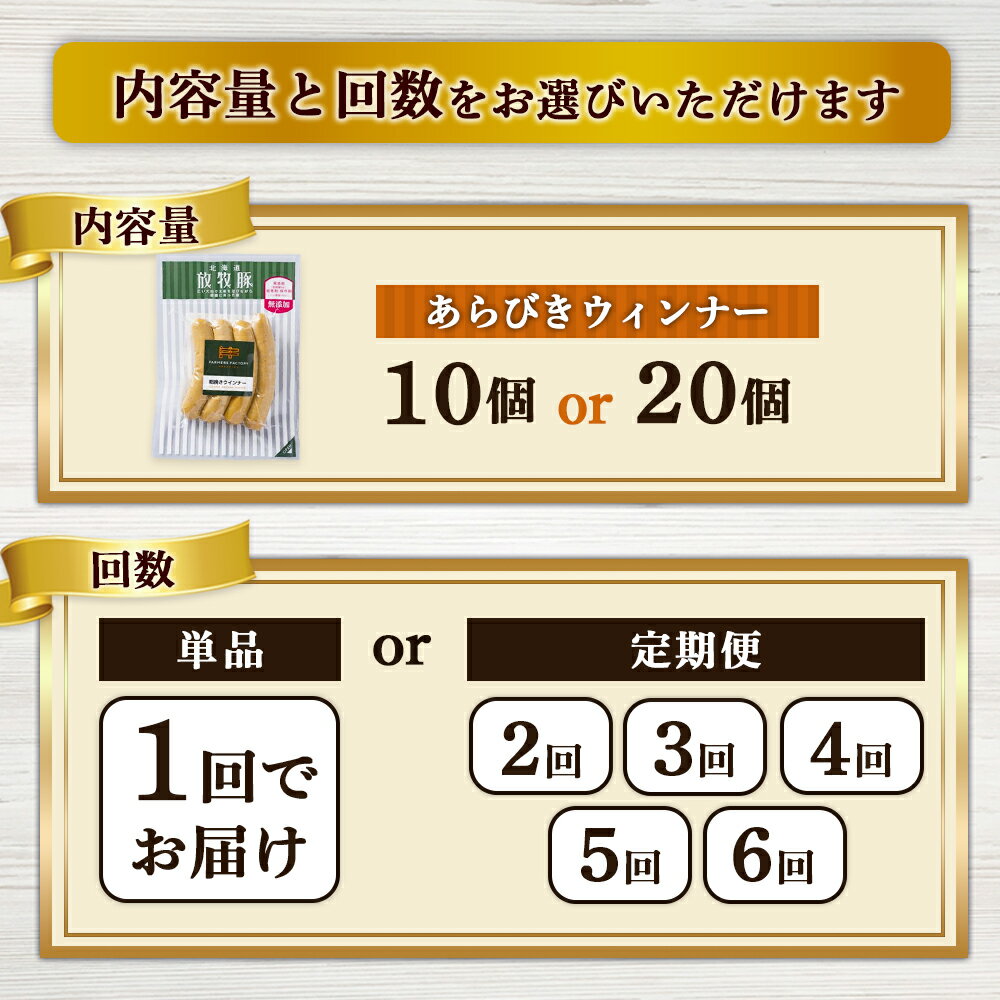 - 【ふるさと納税】【選べる個数&お届け回数!】あらびきウインナー 10個 or 20個 単品 or 定期便(2~6回) | 北海道産 放牧豚 無添加 粗挽き ウインナー ソーセージ セット 豚肉 ポーク おつまみ ジューシー 和三盆糖 安心 お取り寄せ 北海道 恵庭市 北海道恵庭