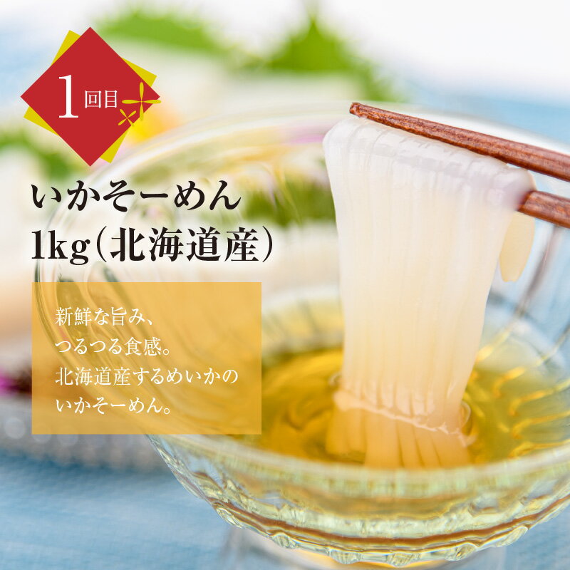 - 【ふるさと納税】はこだて 人気返礼品 定期便 5万円 全3回 人気 名物 ベーシックコース 函館名物 いかそーめん いかそうめん いか刺し 函館製造 北海道産 新鮮 生ずわいがに 3Lサイズ 食べ応え 抜群 紅鮭 切り身 厚切り 月替り お取り寄せ 北海道 函館市 送料無料