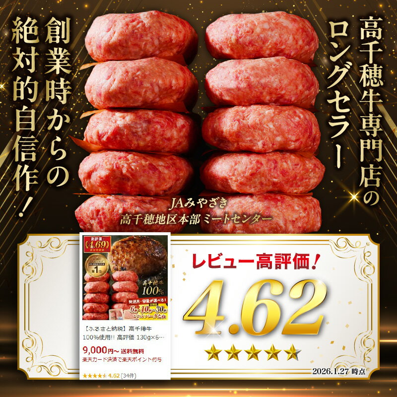 - 【ふるさと納税】高千穂牛100%使用!! 高評価 130g×6個 130g×10個 たね780g×2パック 2個入×5パック×3回定期便 手作り 和牛ハンバーグ 牛肉100% 手ごね 冷凍 惣菜 肉だね 肉厚 ギフト 贈り物 A4等級以上 定期便 選べる内容量 高千穂町 送料無料